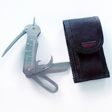 Нож парусный такелажный. Из нержавеющей стали. Лезвие с режущей кромкой, ключ для такелажной скобы, открывалка бутылок, свайка, линейка на рукоятке, кольцо для крепления к ремню. В комплекте мягкий чехол.